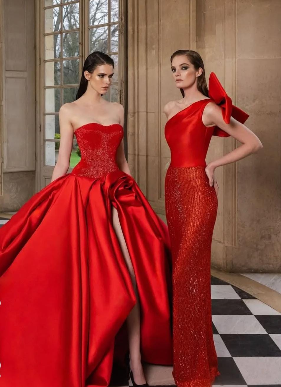 الجزاء السفلي( التنوره ) يتميز بالطيات وقصات الدريبنج بخصر محدد ثم قصات الكلوش princess cut مع طيات الدريبنج جعل الفستان دقيق في تفاصيله مع فتحة طويل يكشف عن ساقيها مع قصة الزيل الطويل وطيات كبيرة اعطها اطلاله ملكية.