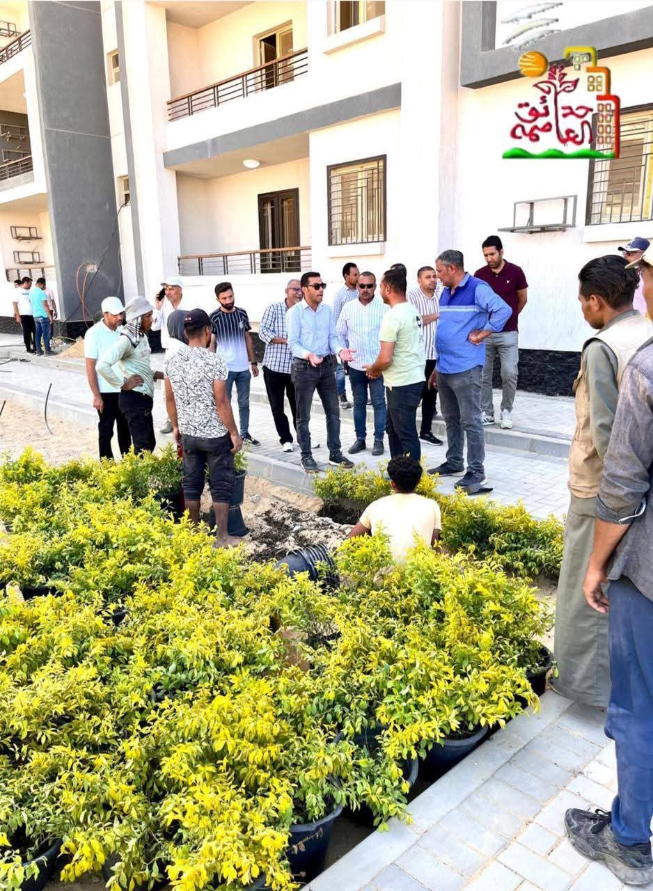 إلي جانبه وجه سيادته بضرورة الاهتمام بالمسطحات الخضراء، مشددًا على تنويع الزراعات وتوزيعها بشكل جمالي ومتناسق يُبرز الوجه الحضاري والجمالي لجميع مواقع العمارات السكنية ويجعلها متنفسًا طبيعيًا يليق بالمواطنين ،